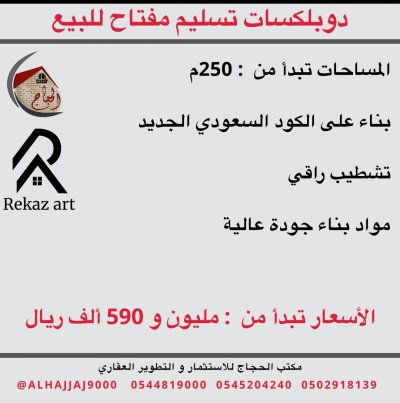 دوبلكسات تسليم مفتاح للبيع بأسعار تبدأ من مليون و590 ألف ريال شامل الضريبة والسعي