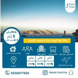 وكالة تذكرة سفر للرحلات الدينية والسياحية رحلات أجازة منتصف الفصل الدراسي الثاني للمدينة وأبها رحلات المدينة و أبها « بالباص » |