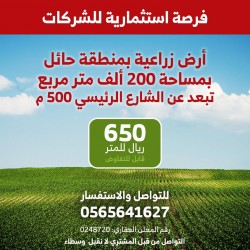 فرصة استثمارية للشركات الزراعية وشركات الألبان.. أرض زراعية للبيع في حائل