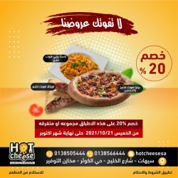 بمناسبة قرب ميلاد النبي الأكرم يقدم ”هوت تشيز“ العرض المميز خصم 20% على 3 أطباق : 1⃣ بيتزا 2⃣ تورتلا 3⃣ باستا أطلبها مجموعة أو متفرقة والخصم لك من 21 أكتوبر حتى نهاية الشهر |