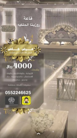 ”قاعة روزيتا الملكية“ عرض خيالي بـ 4000 ريال فقط