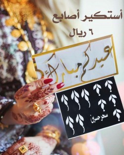 ريحناكم من الانتظار ومن حجز المواعيد تحني وأنت في بيتكِ بأجمل الزخارف.. ودلعي بنتكِ بكتابة أسمها على أستكير الحناء والسعر مغري بالنسبه لجمال الأستكرات أغلب الأستكرات تجيكِ جاهزة يعني بس تشيلي الأستكر وعلى أيدكِ على طول والمميز فيهم أنكِ تقدري تحطيهم بالترتيب الا يعجبكِ.. نوفر لكم حناء بجميع أنواعه.. بالأعشاب - والبنزيــن -و الهـنـدي -لا تقتصر الأستكرات على سن معين. -متوفره تصاميم تناسب جميع الأحجمام والأعمار. تابعونا على ... |