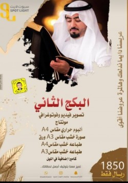 عريسنا دايما ندلعك وهالمرة عروضنا أقوى 💪🏻 اسبوت لايت يشارككم افراحكم ومناسباتكم.. ويقدم لكم عرض البكج الثاني • تصوير فيديو وفوتوغرافي • مونتاج • ألبوم حراري مقاس A4 • صورة خشب مقاس A3 ورق |