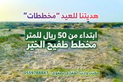 ابتداء من 50 ريال للمتر مخطط طفيح الخير شرائح زراعية مساحات متنوعة 2500 م 5000 م 10000 م ✅ شوارع واسعة300 م 50 م ... |
