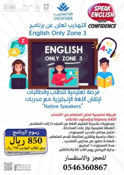 معاً لصيف ممتع ومفيد سارع بالمشاركة في البرنامج وتعلم الإنجليزية بإتقان من متحدثيها وأنت بالمنزل English Only Zone 3 📌 مميزات البرنامج ◀️ 3 لقاءات أسبوعية ◀️ توقيت البرنامج فترة مسائية ◀️ 6 أسابيع - « 18 جلسة تدريبية » ... |