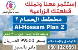 استثمر معنا وتملك قطعة زراعية في مخطط الحسام 2 الزراعي