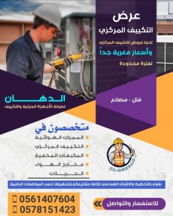 عرض مجنون مع ”الدهان لصيانة الأجهزة المنزلية والتكييف“ جهاز تبريد الخزان ب 2000 ريال فقط لمدة 3 أيام فقط ماندو طن ونصف ب 1800 ريال فقط لمدة 3 أيام فقط عرض التكييف المركزي : لدينا عروض التكييف المركزي وأسعار مغرية جدا لفترة محدودة.. متخصصون في: الممرات الهوائية ... |