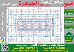 مكتب إبداع وطن العقاري وضمن مشاريعه المميزة وبالمشروع رقم 5 مخطط الابتسام الزراعي بغرب المطار مساحات متنوعة وبأسعار شاملة السعي والضريبة بداية مساحة2500 متر بسعر 110 ألف ريال بداية مساحة 5000 متر بسعر 190 ألف ريال بداية مساحة 10000 متر بسعر 460 ألف ريال مميزات مشروع الابتسام ... |