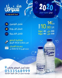 لا تغفل شرب الماء في الشتاء... مياه سنوفل عروض آخر العام 330 - 200 ملم.. ب 10,90 هللة شامل التوصيل والضريبة مع ضمان الجودة.. إمكانية الدفع عبر نقاط البيع يسري العرض حتى 31 ديسمبر.. ارسل الموقع والطلب 0533568999... |