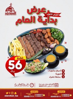 استمتع بعرض المشوي على العشاء من مطعـم ومطبــخ السندبــاد 8 أسيــاخ مشويات + سلطة + 2 شوربة بـ 56 ريـــال فقط العرض متوفر من 1 يناير حتى 17 يناير 2021 في فترة العشاء مطعم ومطبخ السندباد دائما الأفضل وبأسعار مناسبة للجميع.. ... |