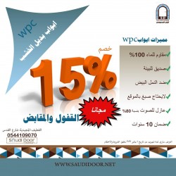لا تفوتك مسابقة " الباب السعودي "،واربح جوائز بقيمة 40 ألف ريال بالاضافة إلى: خصم 15 ٪ و، قسائم شرائية.. الباب السعودي : الوحيد والمتخصص في الأبواب البديلة للخشب ذات المميزات العالية.. مقاوم للماء 100% ضد النمل الابيض صديق للبيئة عازل للصوت بنسبة 80 ٪ ... |