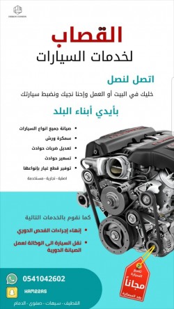 ماتقدر تودي سيارتك للصيانة أو الورشة... ولا تملك وقت؟؟ وتحتاج لمن يقوم بالمهمة بدلاً عنك... إذن هذا الاعلان يهمك.. القصاب لخدمة السيارات... ... |