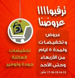 لا تفوتك عروض الشتاء.. عروض وتخفيضات لمدة 5 أيام من الأربعاء وحتى الأحد 13 - 14 - 15 - 16 - 17 يناير.. كل ما تحتاجه تحت سقف واحد وبأسعار خيالية.. أوقات العمل: من السبت وحتى الخميس من الثامنة صباحاً إلى الحادية عشر مساءا.. الجمعة من الواحدة ظهرا حتى الحادية عشر وخمسة وأربعون مساءً.. الانستغرام: ... |