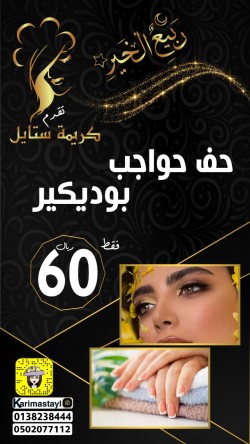 مع ربيع الخير... مركز كريمة يقدم عروض مميزة لتدليع نفسك التي تستحق كل دلع وحب... ▪عند عمل صبغة تفتيح تحصلي على صبغة ترتمنت للشعر مجاناً ▪حف حواجب+ بدكير يد فقط ب60 ريال ▪تنظيف جسم كامل بالشمع + جلسة ترتمنت للشعر ب200 ريال ▪تنظيف بشرة + حف فقط ب200 ريال ▪عند عمل بروتين شعر تحصلي على قص وحف مجانا أوقات الدوام: ... |