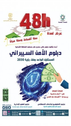 سنة أقساط وسنة مجانا.. دبلوم الأمن السيبراني والعلوم الإدارية والذكاء الصناعي