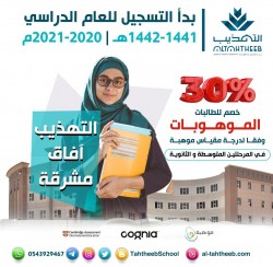 خصم %30 على الرسوم الدراسية في المرحلة المتوسطة والثانوية للعام الدراسي 1441 - 1442 للمتميزات في ملتقى صيف التهذيب والخيال العلمي