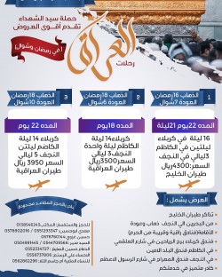 حملة ”نور الهداية“ تقدم لكم عروضها المذهلة لرحلات العراق في رمضان وشوال وذو القعدة..