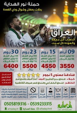 رحلات نور الهداية للعراق في شهر رمضان وشوال وذو القعدة