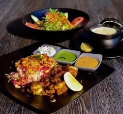 تحتوي على المقبلات والسلطات والوجبات الرئيسيّة والمشروبات ...