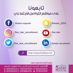 ⭐⭐⭐⭐⭐ *تابعونا على مواقع التواصل الإجتماعي الخاصة بمكتب فايف ستار للإستقدام وترقبوا كل ماهو جديد وحصري على مواقعنا الخاصة والرسمية* *✨ رضاكم هو غايتنا* ✨ *للطلبات والإستفسار تواصلوا معنا على الأرقام التالية: * *هاتف ... |