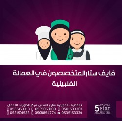 ⭐⭐⭐⭐⭐ *💫✨فايف ستار المتخصصون في العمالة الفلبينية ✨💫* *✨ العمالة الفلبينية تخصصنا* ✨ *رضاكم غايتنا ولطلباتكم والإستفسار تواصلوا معنا على الأرقام التالية: * *هاتف المكتب ☎: * 0535153330 *جوال وواتسب 📱: * 0535153313 - 0535053100 - ... |