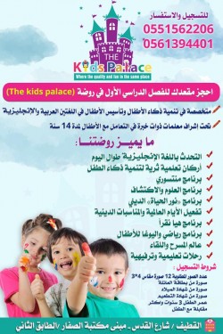 هل تبحث عن روضة تنمي ذكاءات طفلك❓ سارع بحجز مقعد لطفلك / طفلتك للسنة الدراسية الجديدة في روضة (The kids palace) 🖍 متخصصة في تنمية ذكاء الأطفال وتأسيس الأطفال في اللغتين العربية ... |