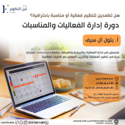 ينظم مركز لين التطوير دورة «إدارة الفعاليات والمناسبات»، تقدمها خبيرة تنظيم الفعاليات بتول آل سيف الحاصلة على درجة الماجستير في إدارة الفعاليات والسياحة والفندقة. وتستمر الدورة لمدة خمسة أيام. للتعرف على المدربة ... |