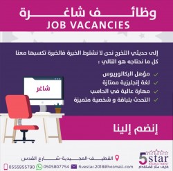 وظائف شاغرة للجنسين في مكتب فايف ستار للاستقدام