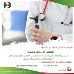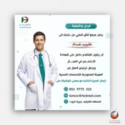 يعلن مجمع اتش الطبي عن حاجته إلى «طبيب عام» على أن يكون المتقدم حاصل على شهادة التخصص في المجال ويحمل ترخيص العمل من الهيئة الصحية للتخصصات الطبية. يرجى ارسال السيرة الذاتية مع ذكر المسمى الوظيفي على: 0539775522 او tcmcx@hotmail.com... |