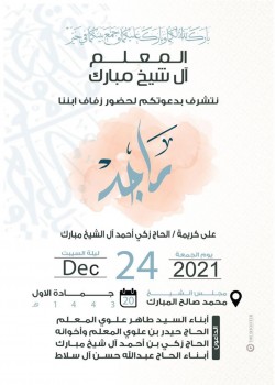 تحتفل عائلة المعلم وآل الشيخ مبارك في القطيف مساء يوم الجمعة بزفاف الشاب ماجد السيد طاهر علوي المعلم على كريمة الحاج زكي أحمد آل الشيخ مبارك في مجلس الشيخ محمد صالح المبارك وسط فرحة الأهل والأصدقاء ومحبي العريسين. وعبر العريس عن سعادته الغامرة بدخوله القفص الذهبي، سائلا الله أن يوفقه وعروسه ويرزقهما الذرية الصالحة. أسرة ”جهينة الإخبارية“ تهنئ العريسين وعائلتيهما وتسأل الله ان يبارك لهما، متمنين لهما حياة سعيدة ‏ ...