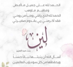 رُزق الشاب عبد العزيز سعود قاسم السيهاتي بمولودة اتفق وحرمه على تسميتها «لين». أسرة ”جهينة الإخبارية“ تبارك له على المولودة جعلها الله من مواليد السعادة واقر الله بها عين والديها. ‏ ...
