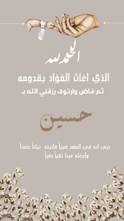 رُزق الشاب عبدالله جاسم آل سويد بمولود اتفق وحرمه زهراء أحمد عبدالله السني على تسميته «حسين». أسرة ”جهينة الإخبارية“ تبارك له على المولود جعله الله من مواليد السعادة واقر الله به عين والديه. ‏ ...