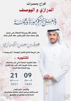 احتفلت عائلة الدرازي واليوسف في صفوى مساء يوم الجمعة بعقد قران الشاب محمد حسن الدرازي على كريمة الحاج لقمان اليوسف «أبو يوسف» وسط فرحة الأهل والأصدقاء ومحبي العريسين. أسرة ”جهينة الإخبارية“ تهنئ العريسين وعائلتيهما وتسأل الله ان يبارك لهما، متمنين لهما حياة سعيدة. ‏ ...