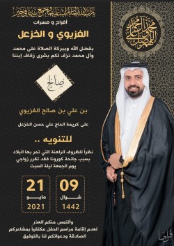 احتفلت عائلة الغزيوي والخزعل في صفوى مساء يوم الجمعة بزفاف الشاب صالح علي صالح الغزيوي على كريمة الحاج علي حسن الخزعل وسط فرحة الأهل والأصدقاء ومحبي العريسين. وعبر العريس عن سعادته الغامرة بدخوله القفص الذهبي، سائلا الله أن يوفقه وعروسه ويرزقهما الذرية الصالحة. أسرة ”جهينة الإخبارية“ تهنئ العريسين وعائلتيهما وتسأل الله ان يبارك لهما، متمنين لهما حياة سعيدة. ‏ ...