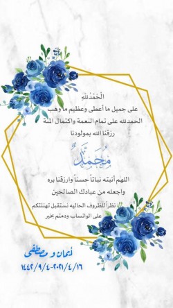 رُزق الشاب مصطفى عبد الله العسيف بمولود اتفق وحرمه أيمان عباس الدعلوج على تسميته «محمد». أسرة ”جهينة الإخبارية“ تبارك له على المولود جعله الله من مواليد السعادة واقر الله به عين والديه. ‏ ...
