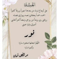 رُزق الشاب مرتضى مهدي أمان بمولودة اتفق وحرمه على تسميتها«نور». أسرة ”جهينة الإخبارية“ تبارك له على المولودة جعلها الله من مواليد السعادة واقر الله بها عين والديها. ‏ ...