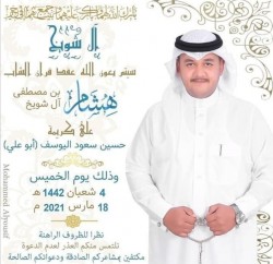 رُزق الشاب مكي ابراهيم الشبيب بمولود اتفق وحرمه على تسميته «حسين». أسرة ”جهينة الإخبارية“ تبارك له على المولود جعله الله من مواليد السعادة واقر الله به عين والديه. ‏ ...