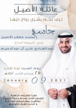 تحتفل عائلة الأصيل وآل عبد الرحيم في سيهات مساء يوم السبت بزفاف الشاب جاسم محمد جعفر الأصيل على كريمة الحاج عبد الهادي علي آل عبد الرحيم بحضور جمع من الأهل والأصدقاء والمحبين. وعبر العريس عن سعادته الغامرة بدخوله القفص الذهبي، سائلا الله أن يوفقه وعروسه ويرزقهما الذرية الصالحة. أسرة ”جهينة الإخبارية“ تهنئ العريسين وعائلتيهما وتسأل الله ان يبارك لهما، متمنين لهما حياة سعيدة. ‏ ...