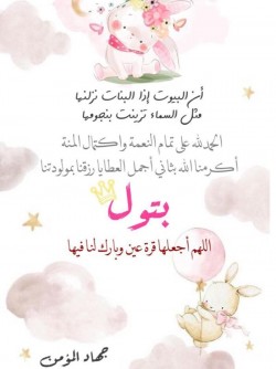 رُزق الشاب فراس حسين آل مصلاب من العوامية بمولودة اتفق وحرمه على تسميتها «رغد». أسرة ”جهينة الإخبارية“ تبارك للمصلاب على المولودة جعلها الله من مواليد السعادة واقر الله به عين والديها. ‏ ...