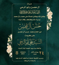 رُزق السيد مظفر السيد محمد كاظم الشرفا بمولود اتفق وحرمه كريمة السيد طالب علي الزواد على تسميته «السيد علي». أسرة ”جهينة الإخبارية“ تبارك للسيدالشرفا على المولود جعله الله من مواليد السعادة واقر الله به عين والديه. ‏ ...