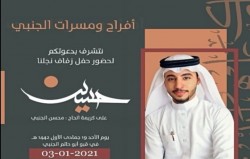 تحتفل عائلة الجنبي في القديح مساء يوم الأحد بزفاف الشاب حسين ابراهيم عبدالله الجنبي على كريمة الحاج محسن عبدالله الجنبي في قبو أبو حاتم الجنبي وسط فرحة الأهل والأصدقاء ومحبي العريسين. وعبر العريس عن سعادته الغامرة بدخوله القفص الذهبي، سائلا الله أن يوفقه وعروسه ويرزقهما الذرية الصالحة. أسرة ”جهينة الإخبارية“ تهنئ العريسين وعائلتيهما وتسأل الله ان يبارك لهما، متمنين لهما حياة سعيدة. ...
