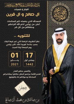 احتفلت عائلة آل صالح وآل قرين في صفوى مساء يوم الجمعة بزفاف الشاب جعفر صادق محمد آل صالح وسط فرحة الأهل والأصدقاء ومحبي العريسين. وعبر العريس عن سعادته الغامرة بدخوله القفص الذهبي، سائلا الله أن يوفقه وعروسه ويرزقهما الذرية الصالحة. أسرة ”جهينة الإخبارية“ تهنئ العريسين وعائلتيهما وتسأل الله ان يبارك لهما، متمنين لهما حياة سعيدة. ...