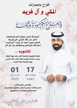 احتفلت عائلة المكي وآل فريد في صفوى مساء يوم الجمعة بعقد قران الشاب محمد علي المكي على كريمة الحاج حسين أحمد آل فريد «أبو فريد» وسط فرحة الأهل والأصدقاء ومحبي العريسين. أسرة ”جهينة الإخبارية“ تهنئ العريسين وعائلتيهما وتسأل الله ان يبارك لهما، متمنين لهما حياة سعيدة. ...