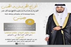تحتفل عائلة المحسن في القطيف مساء يوم الخميس بزفاف الشاب عبدالله حسين حسن المحسن. وسط فرحة الأهل والأصدقاء ومحبي العريسين. اسرة ”جهينة الإخبارية“ تهنئ العريسين وعائلتيهما وتسأل الله ان يبارك لهما، متمنين لهما حياة سعيدة. ...