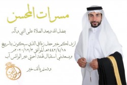 تحتفل عائلة المحروس والمحسن في القطيف مساء يوم الخميس بزفاف الشاب حسن عبد الرسول المحروس. وسط فرحة الأهل والأصدقاء ومحبي العريسين. اسرة ”جهينة الإخبارية“ تهنئ العريسين وعائلتيهما وتسأل الله ان يبارك لهما، متمنين لهما حياة سعيدة. ...
