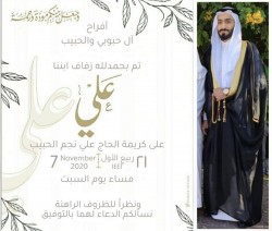 رُزق علي عبد الجليل العاقول من أم الحمام بمولود اتفق وحرمه على تسميته «حسن». أسرة ”جهينة الإخبارية“ تبارك للعاقول على المولود جعله الله من مواليد السعادة واقر الله به عين والديه. ...