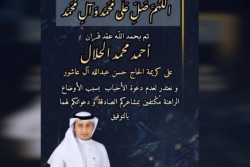 احتفلت عائلة الحلال وآل عاشور في سيهات بعقد قران الشاب أحمد محمد الحلال على كريمة الحاج حسن عبدالله آل عاشور وسط فرحة الأهل والأصدقاء ومحبي العريسين. اسرة ”جهينة الإخبارية“ تهنئ العريسين وعائلتيهما وتسأل الله ان يبارك لهما، متمنين لهما حياة سعيدة. ...