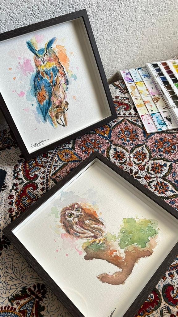 وأشارت إلى عشقها للألوان المائية، والفضل يعود للفنانة أفراح جضر مؤسسة قروب أكوريل للرسم المائي، الذي تأسس عام 2022، ويتضمن لقاء صباح كل سبت، ”نلتقي لنرسم بشفافية مع انسيابي الماء واللون كل مرة في إحدى مقاهي القطيف“ لافتة إلى دور ذلك القروب في عودتها للرسم بعد انقطاع دام أربع سنوات 2019-2022.
