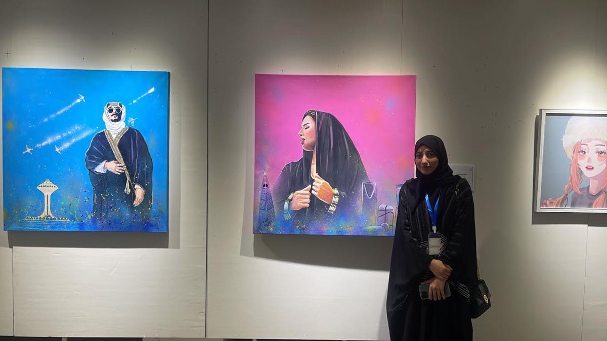شاركت الفنانة ”غدير المبارك“ في معرض ”بذرة فن“ بعملين فنيين يعبران عن طموح الشباب السعودي والازدهار في المملكة.
