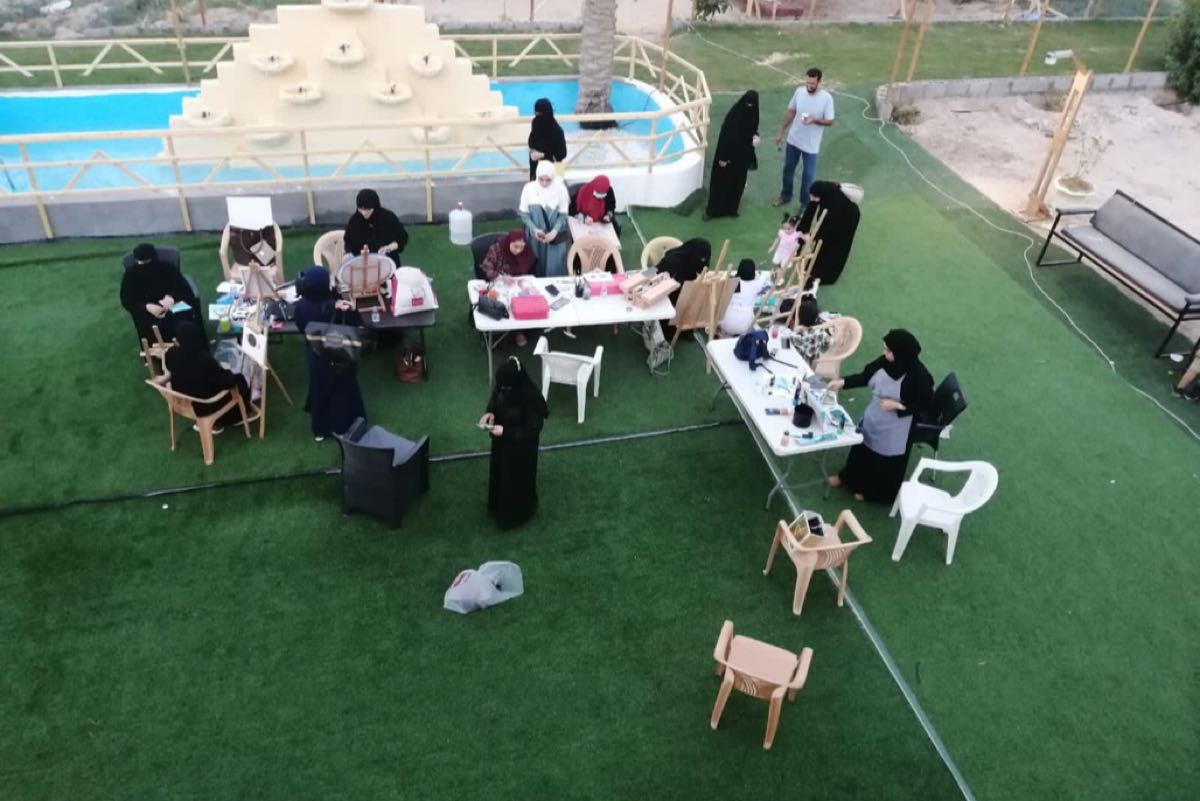 تجمعت عدد من فنانات جماعة الفن التشكيلي بمحافظة القطيف، في مزرعة الجمعان، في جزيرة تاروت؛ للرسم المباشر باحضان الطبيعة.